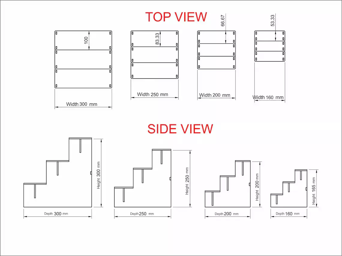 Model 3 ; Genişlik: 25 cm - Derinlik: 25 cm - Yükseklik: 25 cm
