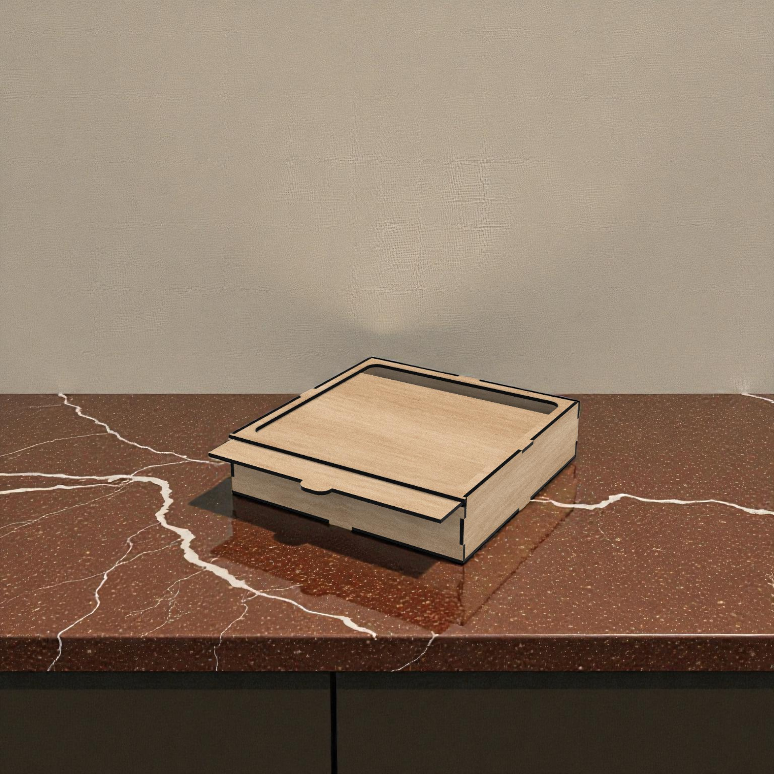 Ahşap Kutu Kayar Kapak 200x200x50mm