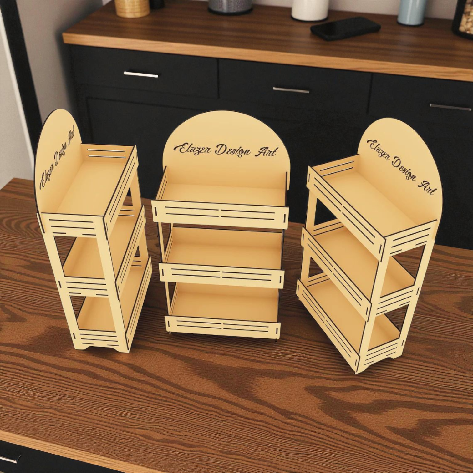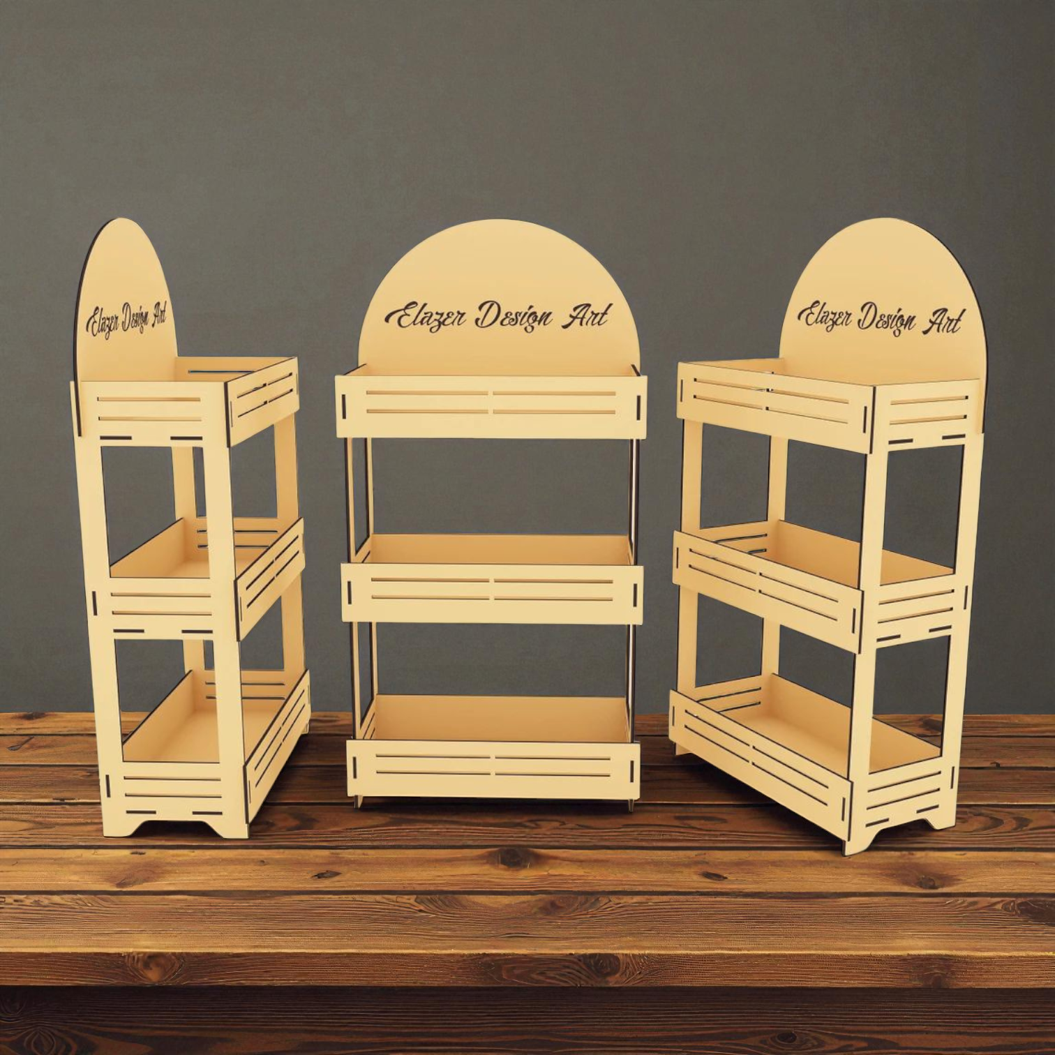 Ahşap Sepetli Teşhir Sergileme Standı 3 Raflı