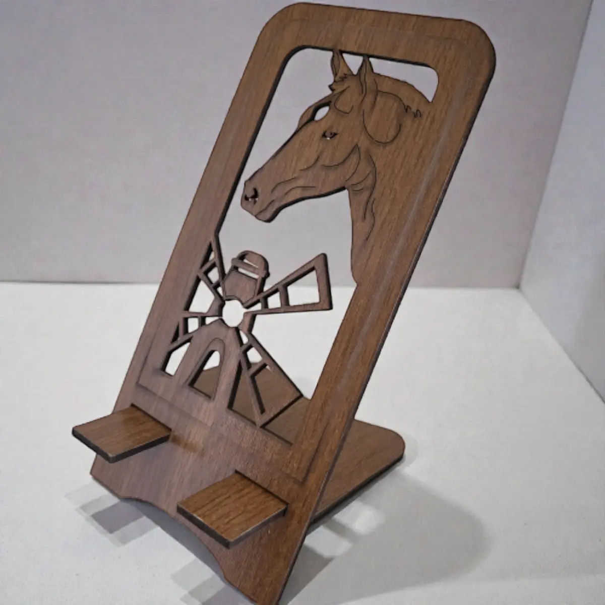 Ahşap Telefon Standı - At Figürlü Asil Seri (8.5x17.5 cm)