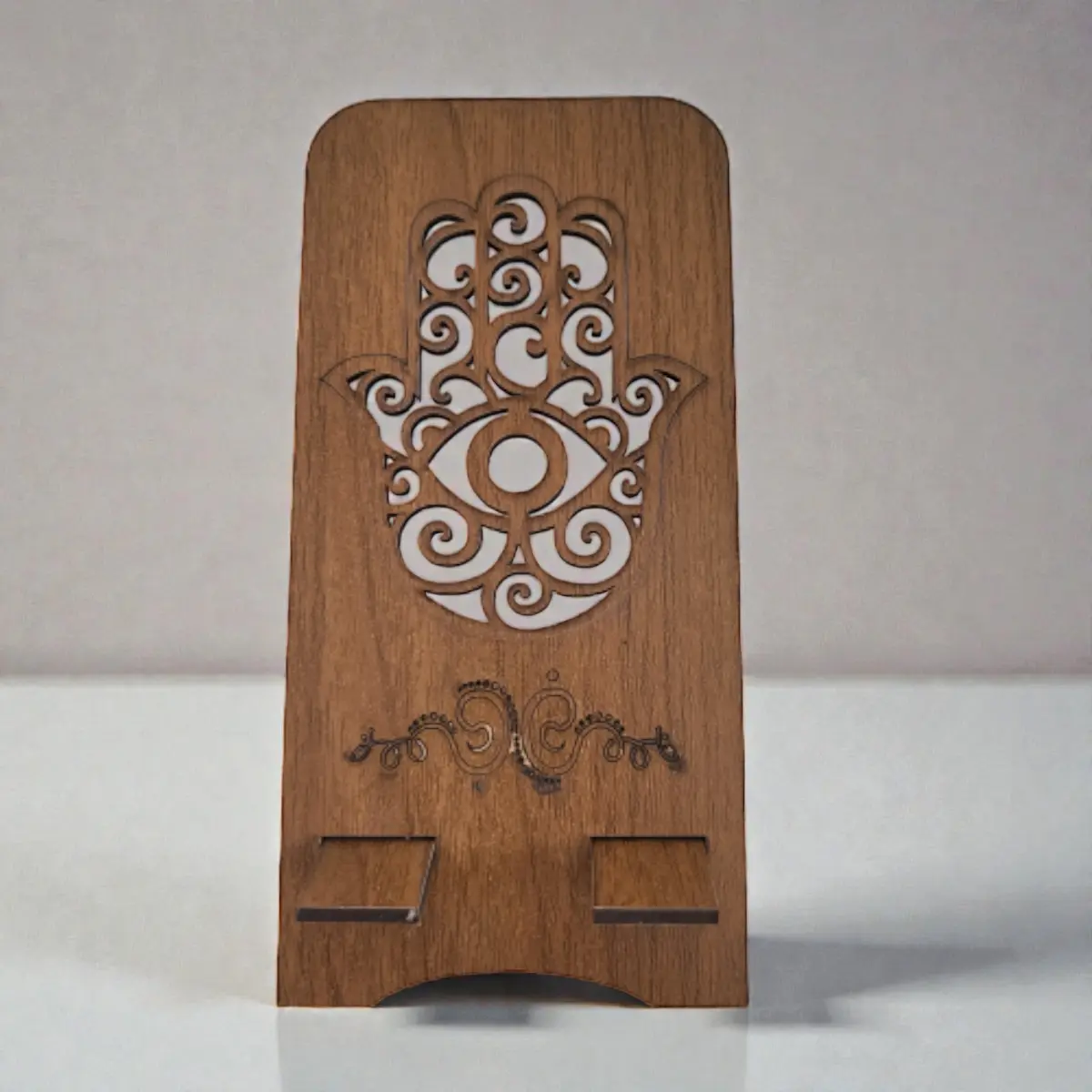 Ahşap Telefon Standı - El Figürlü Ergonomik Seri (8.5x17.5 cm)