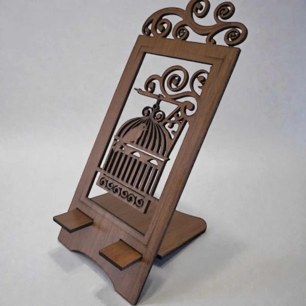 Ahşap Telefon Standı - Kafes Figürlü Dekoratif Seri (8.5x17.5 cm)