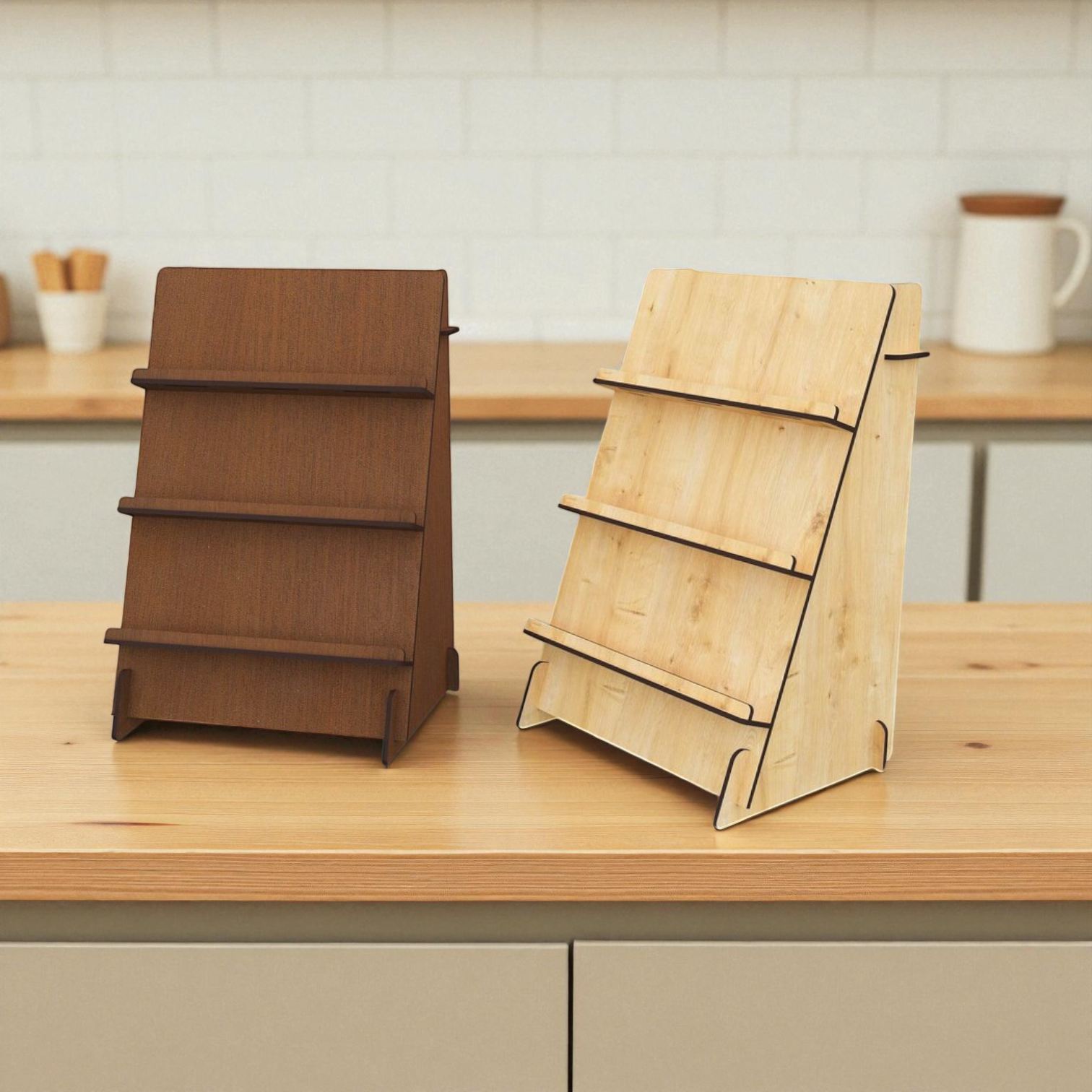 Ahşap Teşhir Rafı 3 Gözlü