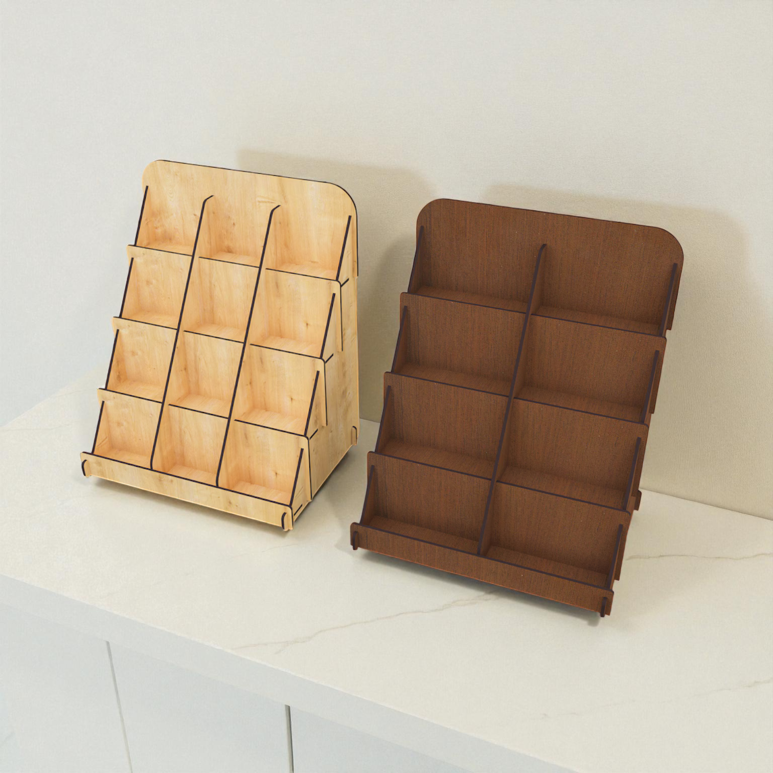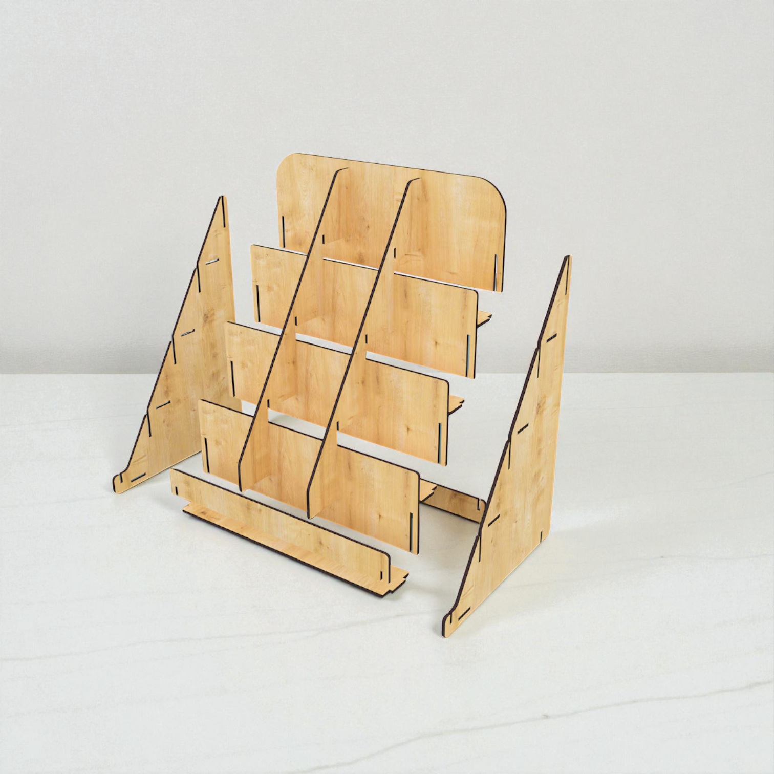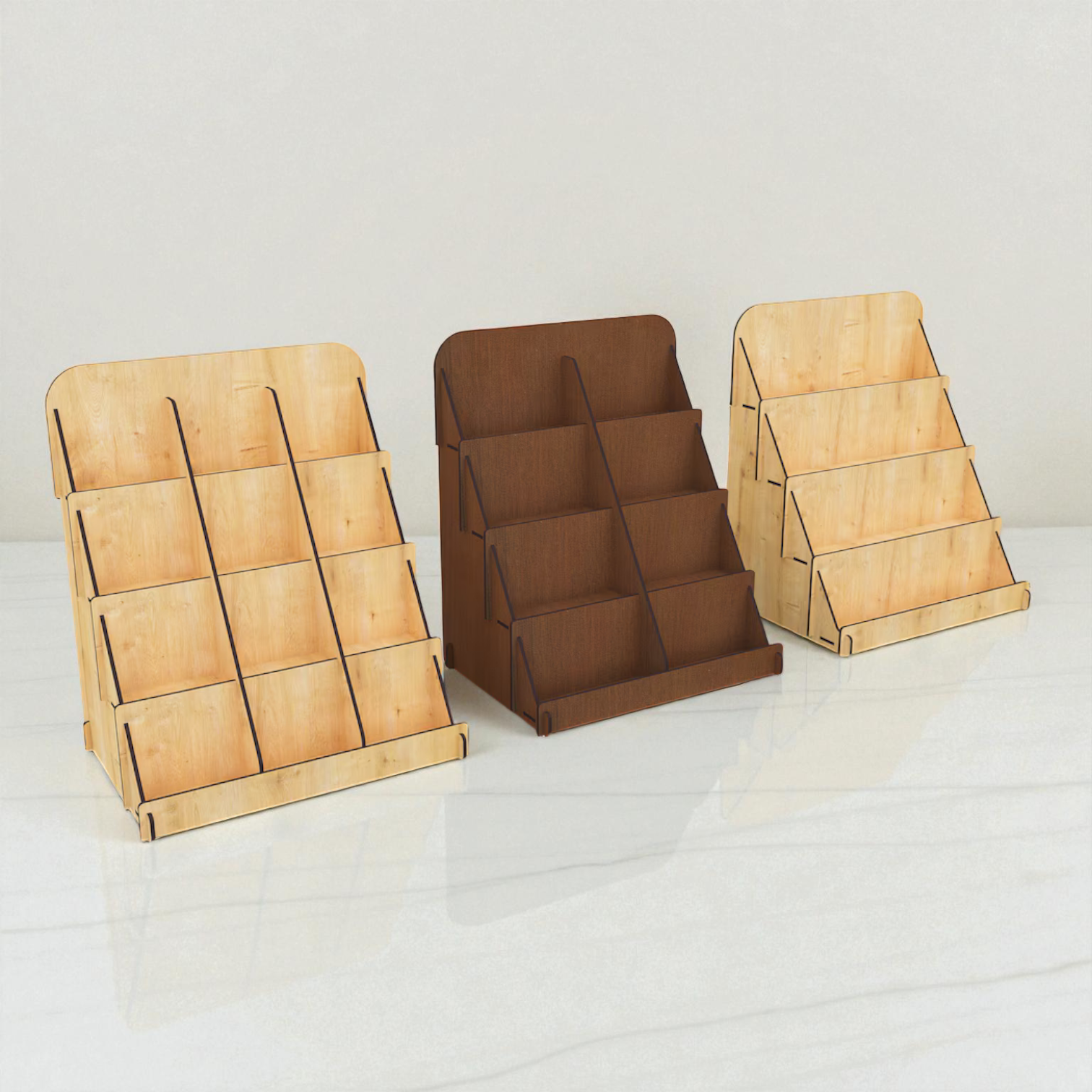 Ahşap Teşhir Standı Bölmeli Raf