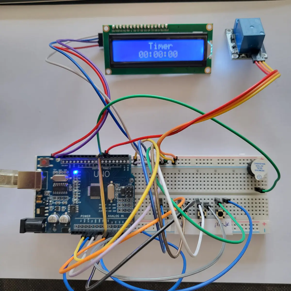 Kurulu ve kodlu yapısı sayesinde kullanıcı, geri sayım mantığı, zaman değişkenleri ve röle çıkışının yazılım üzerinden nasıl yönetildiğini doğrudan gözlemleyebilir. Proje, temel otomasyon ve zaman kontrollü uygulamalara giriş için sade bir örnek sunar.
