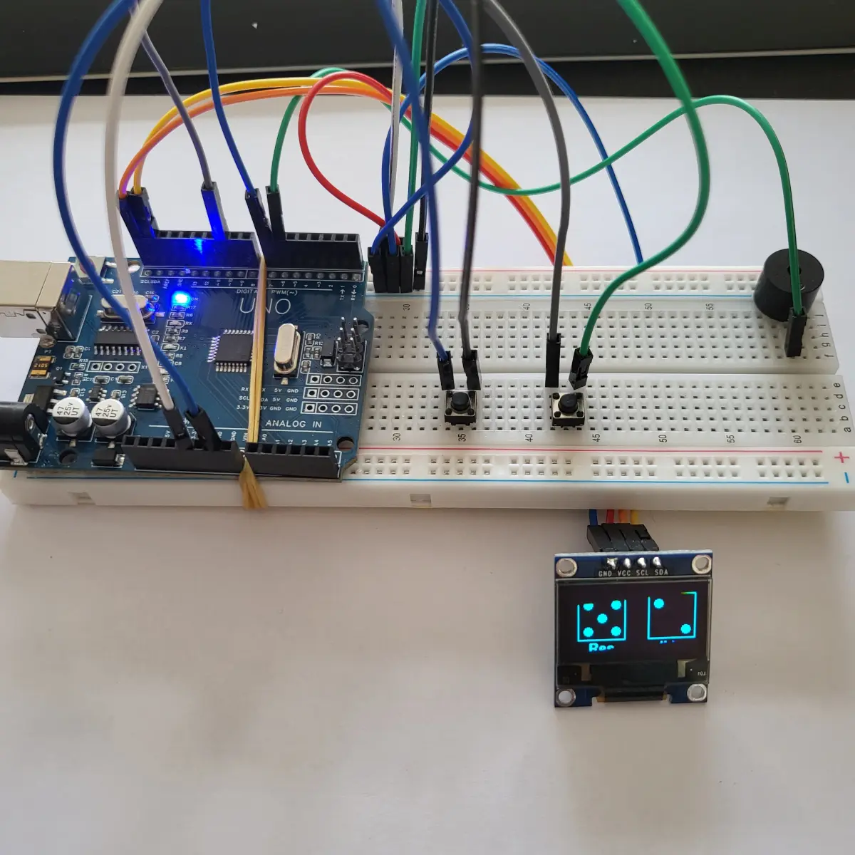 Kurulu ve kodlu yapısı sayesinde kullanıcı, buton okuma, mod seçimi, ekran üzerinde grafik gösterimi ve rastgele sayı üretme gibi temel Arduino konularını pratik olarak inceleyebilir. Proje, oyun ve olasılık temelli uygulamalara giriş için sade bir örnek sunar.