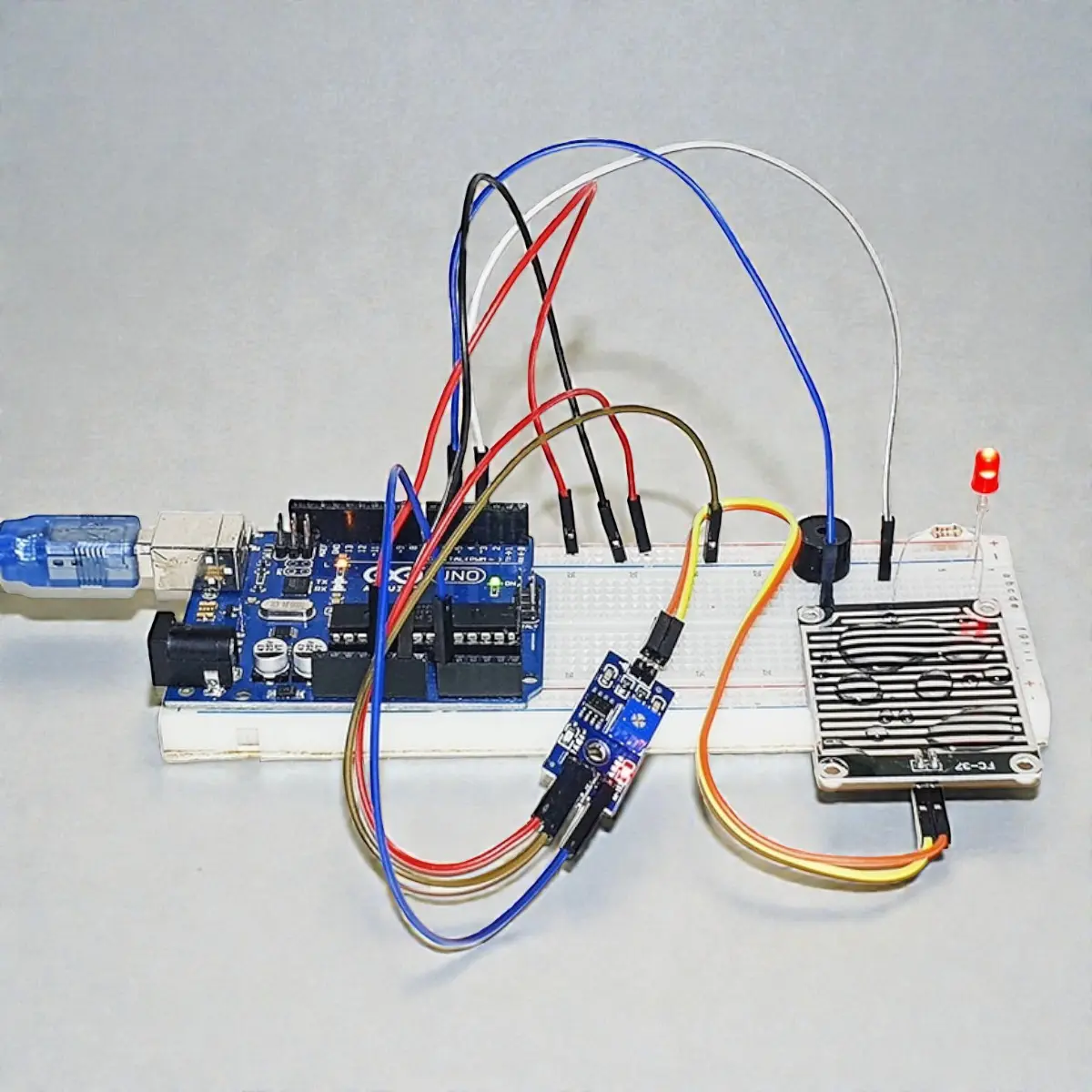 Kurulu ve kodlu yapısı sayesinde sistemin temel çalışma mantığı doğrudan incelenebilir. Sensör yüzeyine temas eden sıvının algılanması ve alarm çıktılarının nasıl üretildiği pratik olarak gözlemlenebilir. Bu yapı, sıvı algılama temelli Arduino projeleri için sade ve anlaşılır bir örnek sunar.