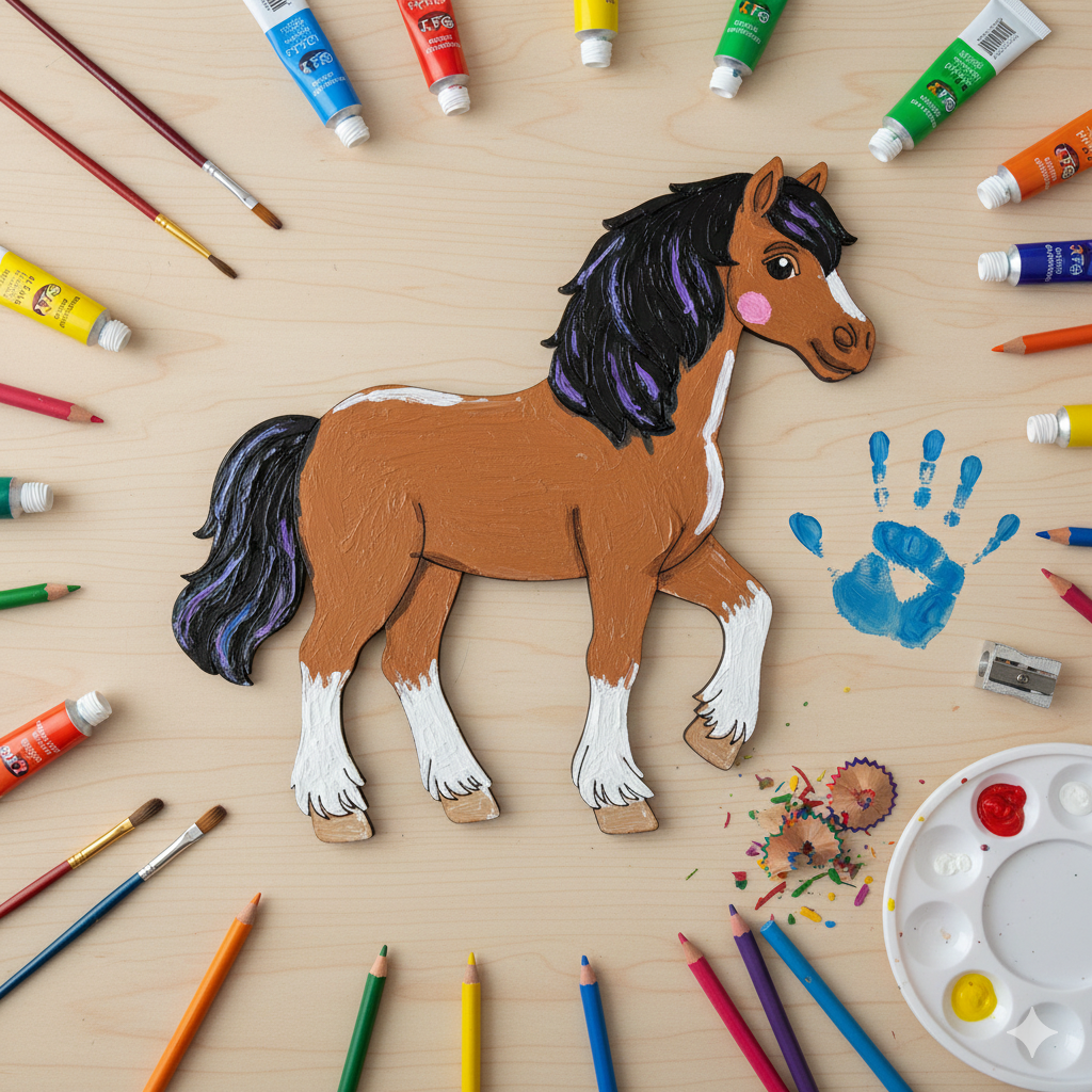 Boyanabilir ahşap at figürü çocukların el becerilerini geliştiren eğitici bir sanat etkinliği materyalidir | 3 mm ham mdf materyalden lazer kesim ile üretilen boyanabilir ürünler pürüzsüz yüzey yapısına sahiptir | Okul öncesi boyama etkinlikleri projelerinde çocuk gelişimini destekleyen montessori oyuncak standartlarındadır | 16 x 15 cm ölçülerindeki çiftlik serisi at figürü okul etkinliği boyama ihtiyaçları için ideal teknik boyutlardadır | Akrilik, guaj ve marker kalem uygulamalarına tam uyum sağlayan ahşap sanat etkinlikleri bileşenidir | Ecem Bilgisayar atölyesinde kreş etkinlik malzemeleri için özel olarak imal edilmiştir.