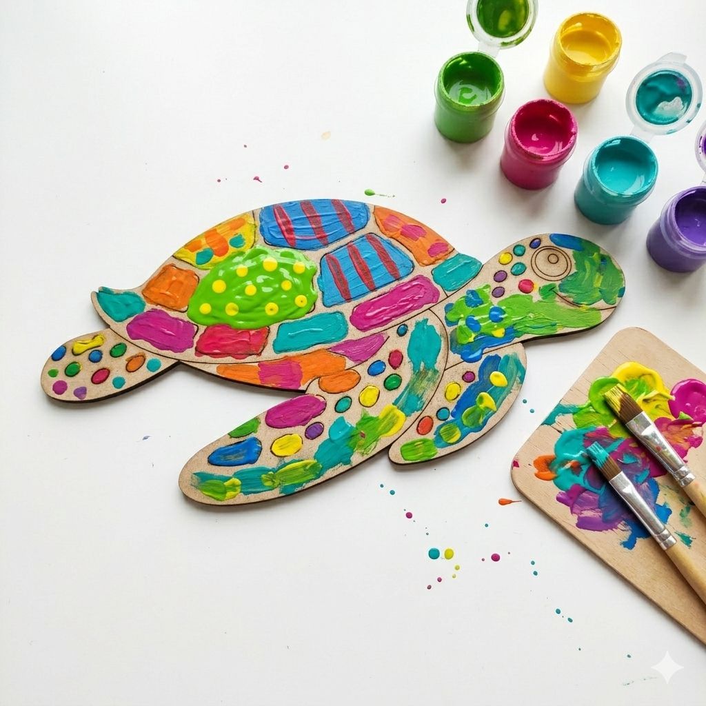 Boyanabilir ahşap deniz kaplumbağası figürü çocukların el becerilerini ve görsel algı gelişimini destekleyen eğitici bir ahşap oyuncak ve okul etkinlik boyama ürünüdür | 3 mm kalınlığında birinci sınıf ham mdf malzemeden lazer kesim ile üretilmiştir | 17 cm x 10 cm ölçülerindeki deniz temalı mdf boyama figürü anaokulu boyama aktivitesi ve sanat etkinlik çalışmalarına uygun teknik ölçüdedir | Yüzeyi pürüzsüz olup akrilik, guaj ve marker kalem uygulamalarına tam uyumludur | Boyama okul etkinlik aktivite projelerinde kullanılabilecek ham yüzey formundadır | Ecem Bilgisayar atölyesinde üretilmektedir.