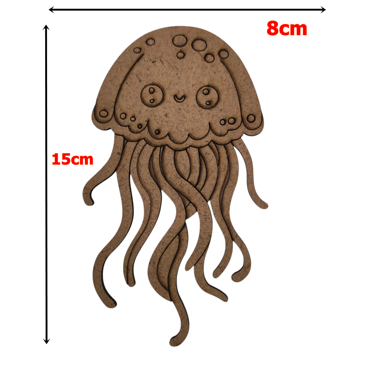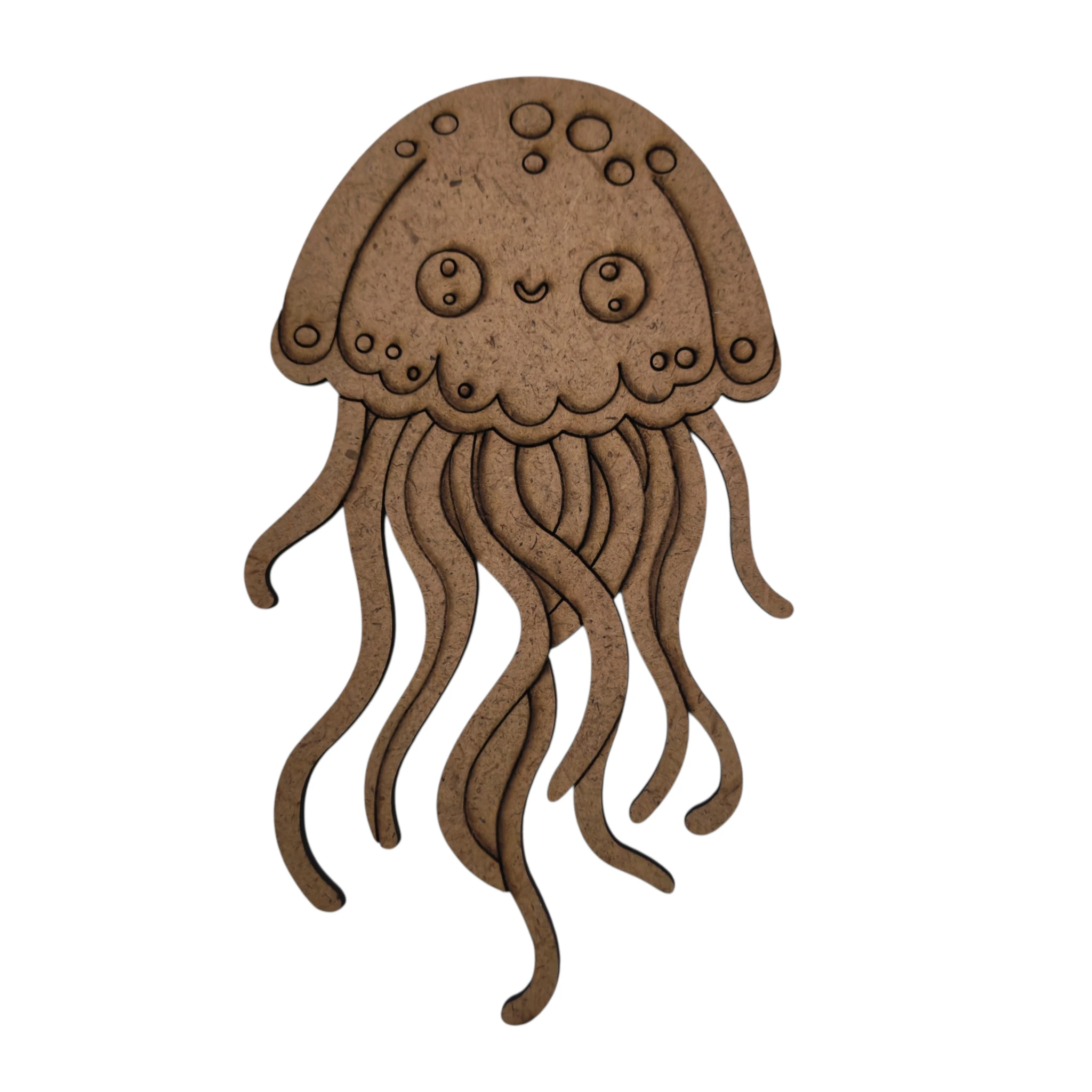 Boyanabilir ahşap denizanası modeli, deniz canlıları temalı ahşap boyama etkinliği çalışmalarında kullanılan 3 mm ham mdf figürdür. Lazer kesim tekniği ile üretilmiş olup kenar hatları temiz ve düzgündür. Çocuklar için ahşap boyama projelerinde rahat kullanım sağlayan ölçü yapısına sahiptir. Anaokulu ve okul etkinlik aktivite uygulamalarında eğitici üretim materyali olarak tercih edilir.