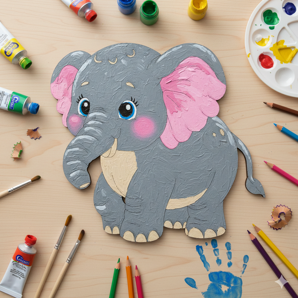 Boyanabilir ahşap fil figürü çocukların el becerilerini geliştiren eğitici bir sanat etkinliği materyalidir | 3 mm ham mdf materyalden lazer kesim ile üretilen boyanabilir ürünler pürüzsüz yüzey yapısına sahiptir | Okul öncesi boyama etkinlikleri projelerinde çocuk gelişimini destekleyen montessori oyuncak standartlarındadır | 17 x 16 cm ölçülerindeki safari temalı fil figürü okul etkinliği boyama ihtiyaçları için ideal teknik boyutlardadır | Akrilik, guaj ve marker kalem uygulamalarına tam uyum sağlayan ahşap sanat etkinlikleri bileşenidir | Ecem Bilgisayar atölyesinde kreş etkinlik malzemeleri için özel olarak imal edilmiştir.