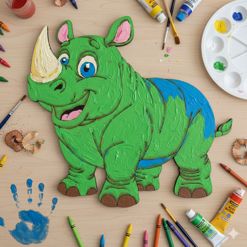 Boyanabilir ahşap gergedan figürü çocukların el becerilerini geliştiren eğitici bir sanat etkinliği materyalidir | 3 mm ham mdf materyalden lazer kesim ile üretilen boyanabilir ürünler pürüzsüz yüzey yapısına sahiptir | Okul öncesi boyama etkinlikleri projelerinde çocuk gelişimini destekleyen montessori oyuncak standartlarındadır | 16 x 16 cm ölçülerindeki safari temalı gergedan figürü okul etkinliği boyama ihtiyaçları için ideal teknik boyutlardadır | Akrilik, guaj ve marker kalem uygulamalarına tam uyum sağlayan ahşap sanat etkinlikleri bileşenidir | Ecem Bilgisayar atölyesinde kreş etkinlik malzemeleri için özel olarak imal edilmiştir.