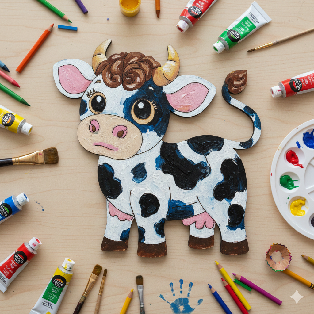 Boyanabilir ahşap inek figürü, çocukların çiftlik hayatına ve hayvanlar dünyasına olan merakını sanatsal bir aktiviteyle birleştiren profesyonel bir çocuk gelişim materyalidir. 15 x 14 cm boyutundaki bu model, yüksek hassasiyetli lazer kesim teknolojisi ile kenarları pürüzsüzleştirilmiş 3 mm ham mdf malzemeden üretilmiştir. Ürün, okul öncesi sanat etkinlikleri ve evde hobi saatleri için boyanabilir ahşap oyuncak standartlarına uygundur. Sempatik inek formu, çocukların odaklanma sürelerine ve görsel algılarına katkı sağlayan eğitici bir hobi materyalidir. Boyama çalışmaları için zımpara gerektirmeyen temiz bir yüzey sunar.