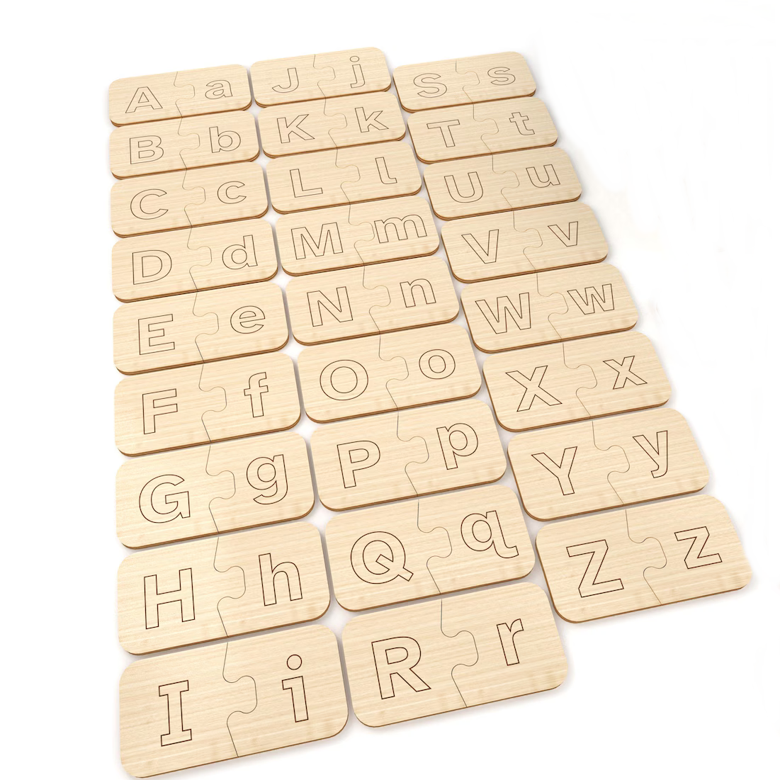 Montessori ahşap alfabe eşleştirme yapbozu çocukların harfleri tanımasını ve erken okuma becerilerini geliştirmesini desteklemek amacıyla tasarlanmış eğitici bir oyuncaktır | dayanıklı ahşap malzemeden üretilmiştir | set içerisinde büyük ve küçük harfleri eşleştirmeyi sağlayan toplam 26 harf puzzle parçası bulunmaktadır | her harf eşleştirme parçası bir araya getirildiğinde yaklaşık 100 mm x 50 mm ölçülerine sahiptir | çocukların harfleri görsel olarak tanımasına ve doğru eşleştirme yaparak öğrenmesine yardımcı olur | Montessori eğitim yöntemi ile uyumlu olan bu oyun çocukların dikkat gelişimini, problem çözme becerisini ve ince motor becerilerini destekler.